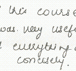 Not to miss this course. Everything was very useful, especially covered everything of the course concisely